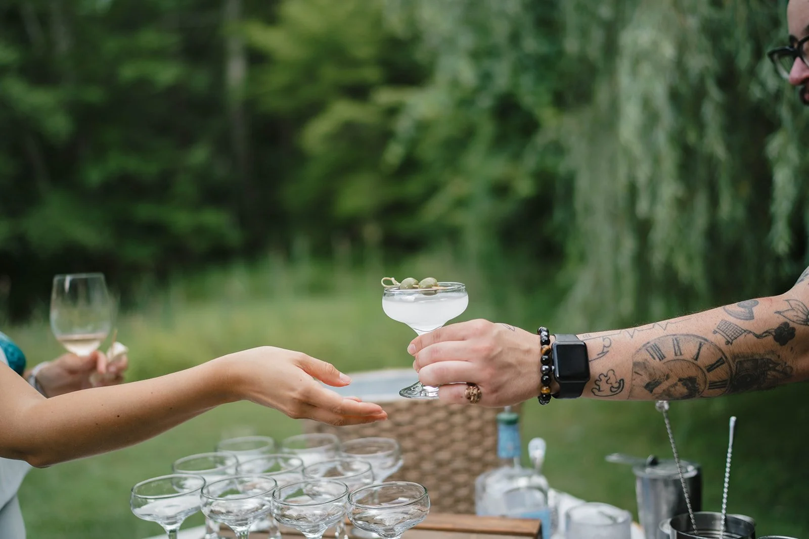 The wedding weekend started off with a quiet Thursday night in the Foxfire Mountain House cottage as they settled into the weekend. Friday afternoon guests were greeted in the Foxfire bar room with a Pimm’s Cup, as a nod to Tom’s British heritage. Following their rehearsal dinner on the veranda, they invited their full guest list to join them for a drink (or two!) the evening before the wedding.